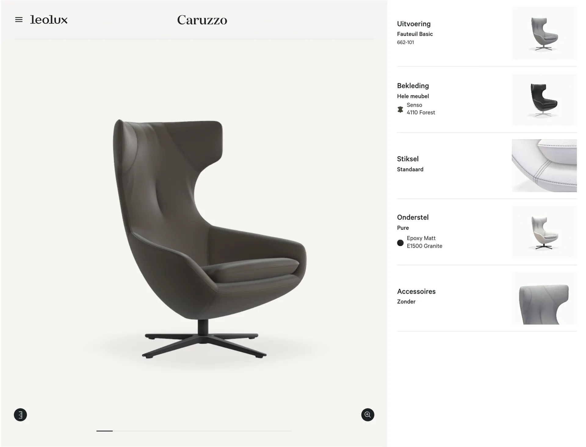 Ziet je jezelf al zitten in je eigen Caruzzo, met je benen heerlijk op je gratis poef? Kom dan naar het Leolux Experience Center in Breukelen of ga naar de dichtstbijzijnde Leolux-dealer voor een comfortabele kennismaking.